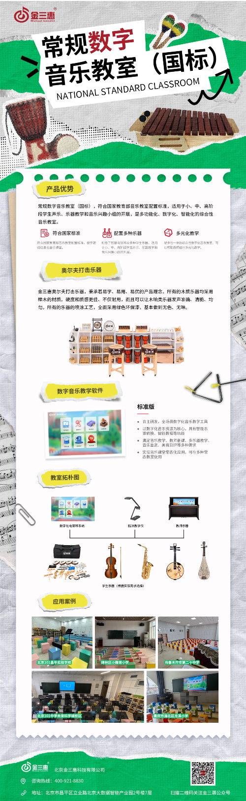 金三惠提供種類繁多的各種樂器,包括電鋼琴、奧爾夫樂器、西方樂器、民族樂器等,還提供各種音樂教具和數(shù)字化教具,可自由選擇為教室配置,讓音樂教學(xué)事半功倍。