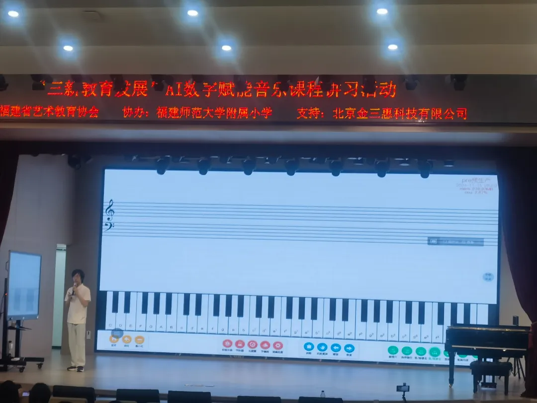 2024年11月16日,福建省“三新教育發(fā)展”AI數(shù)字賦能音樂課程講習(xí)活動成功舉辦。本次活動由福建省藝術(shù)教育協(xié)會主辦,北京金三惠科技有限公司支持,福建師范大學(xué)附屬小學(xué)協(xié)辦,為福建省的中小學(xué)音樂教師們提供了一個學(xué)習(xí)與交流的平臺。