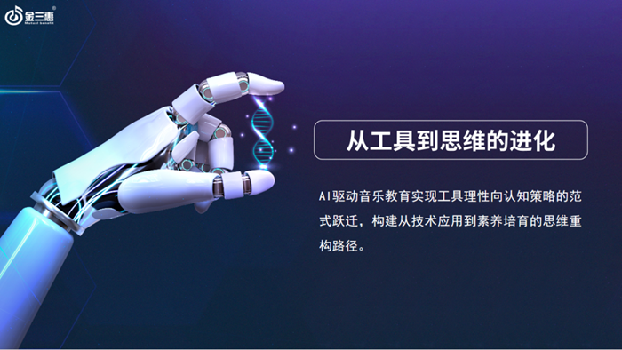 作為音樂教育數字化領域的標桿企業,北京金三惠教研部學科組長鄭詩垚在活動中發表主題演講《AI賦能音樂雙課型:從教學支持到深度學習的智能躍遷》,圍繞“AI賦能”系統分析了音樂教育在數字化背景下的變革路徑。