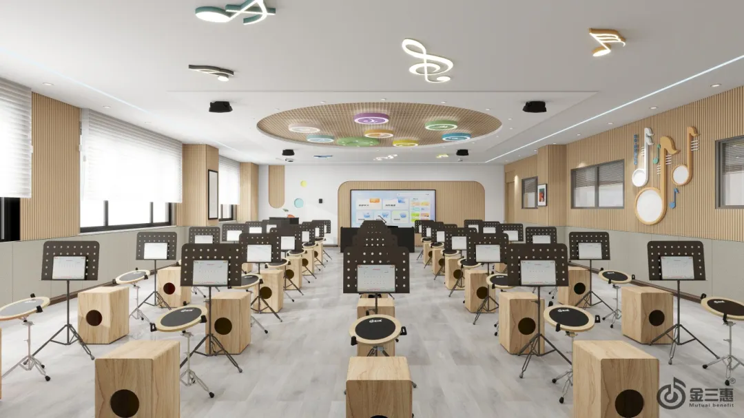 教室滿足中小學(xué)音樂與唱游課程教學(xué)要求,配備多種樂器、教具、課程資源等,能夠滿足學(xué)生聆聽、欣賞、演奏、創(chuàng)作、排練的需求,培養(yǎng)學(xué)生的創(chuàng)造力、自信心、專注性、合作精神、反應(yīng)能力及全面人格發(fā)展,享受音樂帶來的快樂。