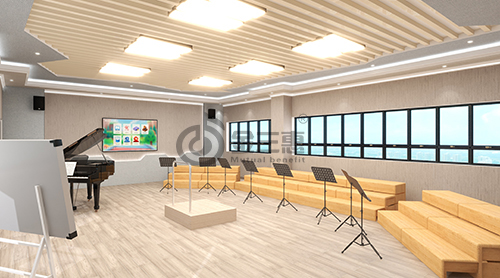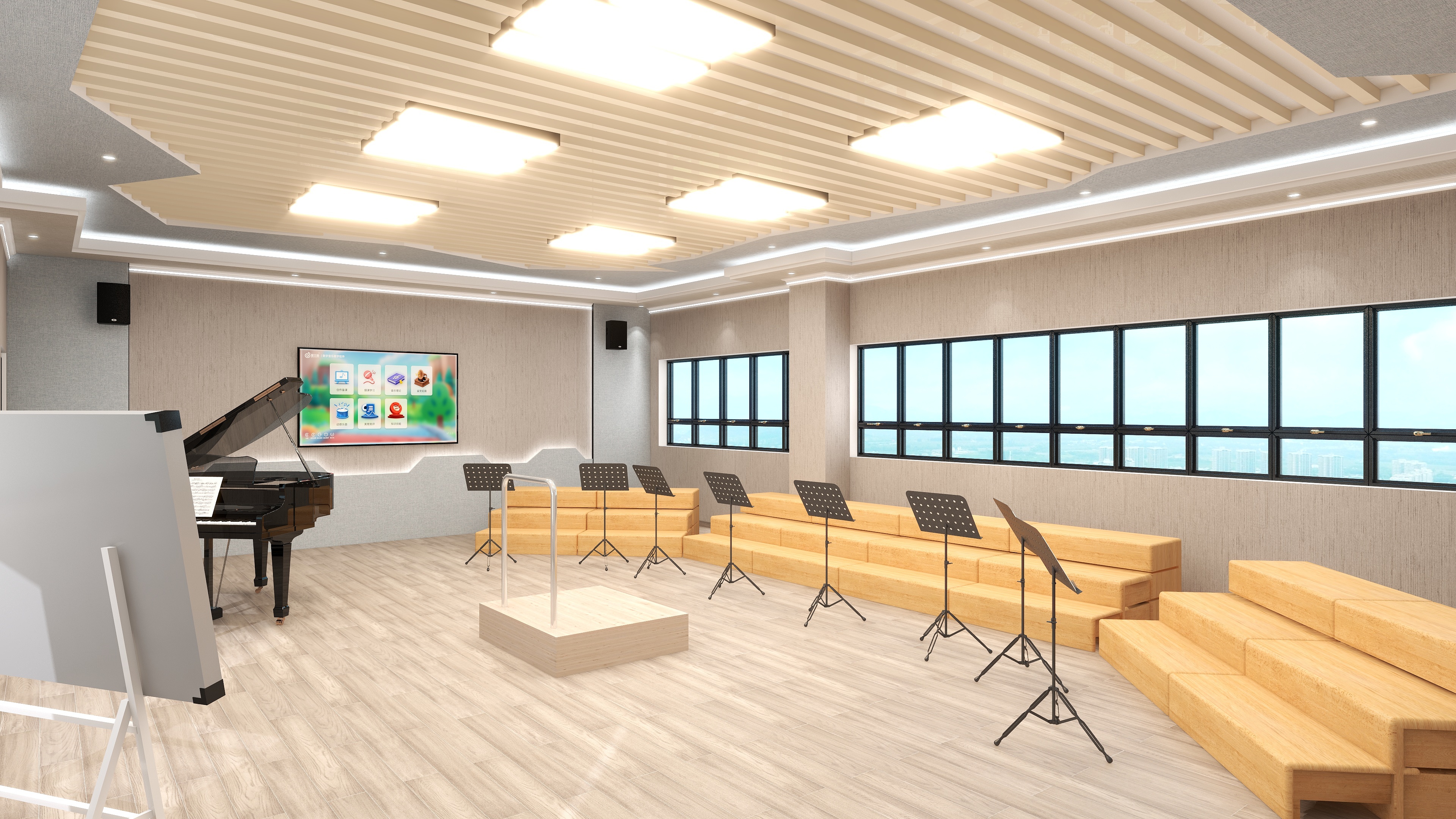 教室設計具有實用性,藝術性,同時適合便捷的歌唱教學,達到投資少、環境優美、易操作的特點,同時,數字音樂教學系統的應用,大大提高老師的教學效率和授課質量。