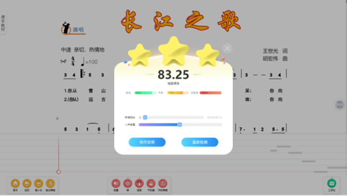音樂課上學生們再也不怕音準和節(jié)奏問題的困擾,學生們只需要對著軟件演唱、演奏,AI就能通過聲音識別技術,精準分析音準、節(jié)奏完成度,還能指出需要改進的地方。