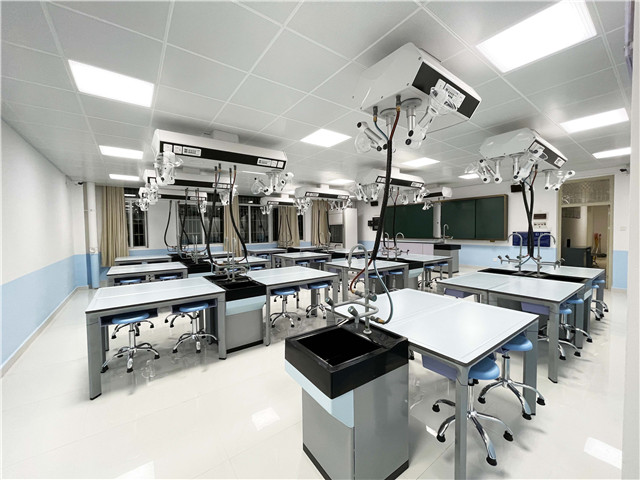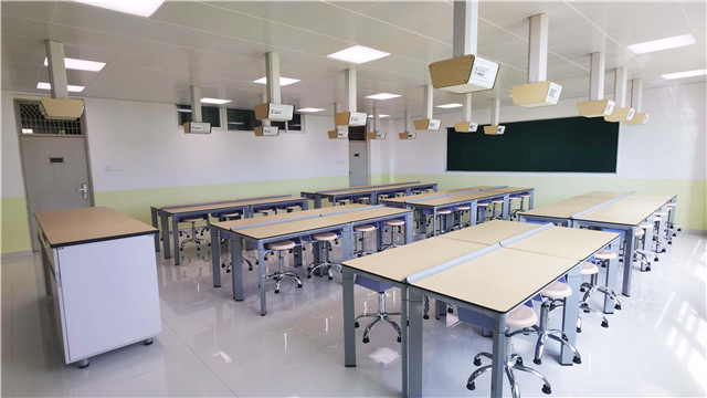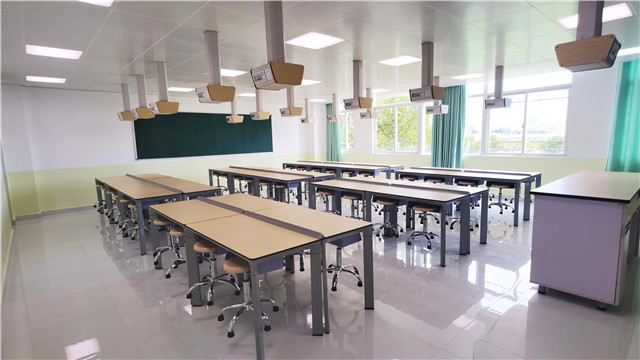 為了給學生提供優越的教學條件,配備優質的實驗室,學校選擇了廣東童園科技有限公司設計建造了理化生智能實驗室。童園智能實驗室它解決了傳統實驗室空間布置的束縛問題,實驗室教學設備能夠靈活布局,通過可移動的實驗室設備,布置成不同的實驗教學模式,滿足多種教學需求。