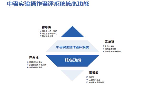 天智中考實驗操作考評系統的核心競爭力也就是它的核心功能,主要體現在四個方面: