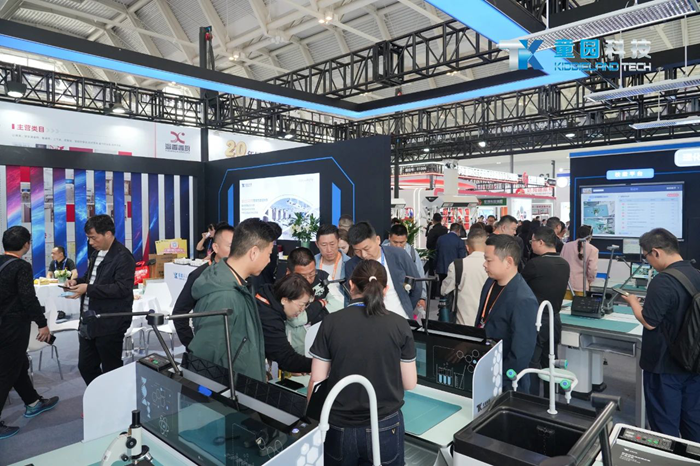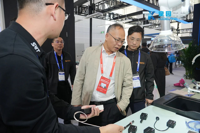 展會現(xiàn)場,童園科技展出的理化生智能實驗室,由智能頂裝系統(tǒng)、物聯(lián)智控系統(tǒng)、實驗室廢氣處理系統(tǒng)、實驗室污水處理系統(tǒng)等核心組成設(shè)備構(gòu)建而成,引得與會領(lǐng)導(dǎo)、嘉賓紛紛駐足,進行深切的交流。