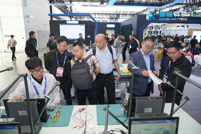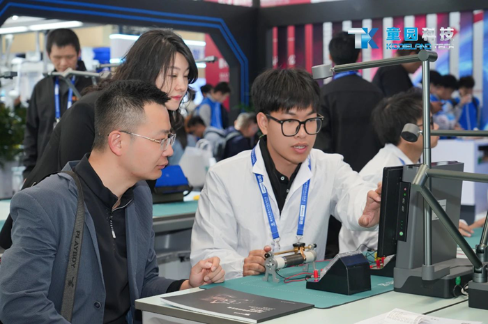 此次展會,童園科技以理化生智能實驗室為基石,深度聚焦中考實驗操作考評系統(tǒng)與AI評分系統(tǒng)在教育領(lǐng)域的創(chuàng)新應(yīng)用,精心設(shè)置了理化生智能實驗室(升降塔吊區(qū)、搖臂塔吊區(qū))、中考實驗操作考評系統(tǒng)、AI評分系統(tǒng)、危化品區(qū)及組培區(qū)等六大分區(qū),為參觀者打造了沉浸式觀展體驗,讓大家全方位感受教育科技融合的魅力。