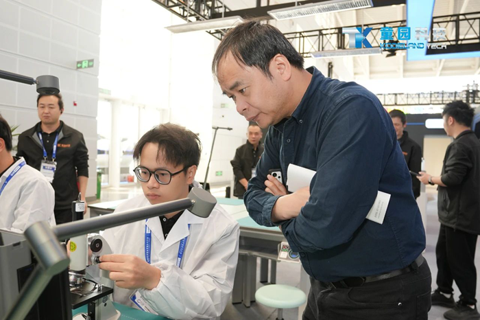 此外,童園科技的中考實驗操作考評系統(tǒng)與AI評分系統(tǒng)是當之無愧的焦點所在。專業(yè)的技術(shù)人員有條不紊地向各觀眾全方位講解并展示考試系統(tǒng)的考評流程。在演示中考實驗操作考評系統(tǒng)時,系統(tǒng)以極高的靈敏度,精準捕捉考生的每一個實驗動作,從實驗器材的正確選取,到實驗步驟的規(guī)范執(zhí)行,都能被清晰識別并記錄,充分彰顯了其準確性。