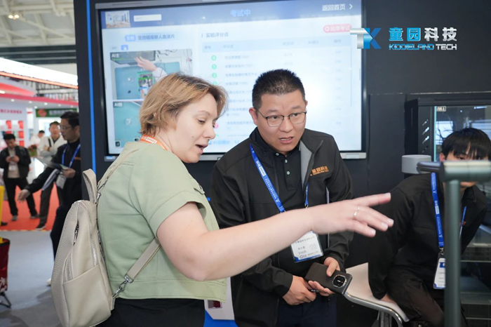 展會期間,出席開幕式的部分領(lǐng)導(dǎo)及嘉賓蒞臨廣東童園科技有限公司展位參觀指導(dǎo)。童園科技副總經(jīng)理胡剛向來訪的領(lǐng)導(dǎo)和嘉賓詳細介紹了公司的新產(chǎn)品,以及全新的發(fā)展戰(zhàn)略目標。領(lǐng)導(dǎo)和嘉賓們認真聆聽講解,對童園科技的理化生智能實驗室、中考實驗操作考評系統(tǒng)和AI評分系統(tǒng)等系列產(chǎn)品表現(xiàn)出濃厚興趣,并給予了高度評價。他們充分肯定了童園科技的研發(fā)方向、發(fā)展戰(zhàn)略目標與教育改革深度融合的舉措,鼓勵童園科技繼續(xù)保持創(chuàng)新精神,為推動教育現(xiàn)代化貢獻力量。