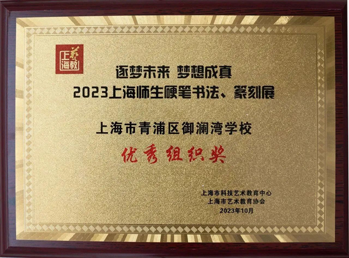 2023年10月29日,“逐夢未來夢想成真”2023上海師生硬筆、書法篆刻作品展,御瀾灣學(xué)校多名師生作品脫穎而出,獲得多項(xiàng)獎項(xiàng)并入展本次展覽。學(xué)校亦榮獲“優(yōu)秀組織獎”,并入選首批上海市“硬筆書法進(jìn)校園”試點(diǎn)學(xué)校。