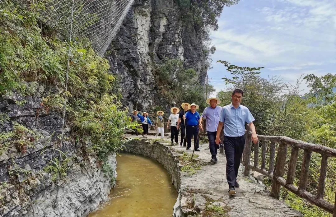 考察團一行徒步“絕壁天河”