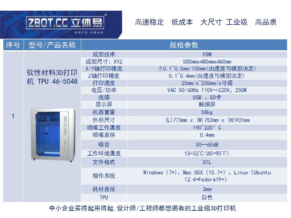 立體易TPU 46-5048軟性材料3D打印機