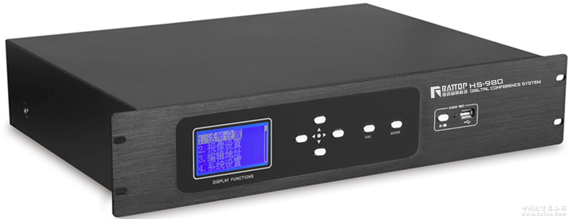 產(chǎn)品詳細(xì)介紹HS-980系列是一款全新高集成主機(jī),采用數(shù)字技術(shù)為核心,自帶2.8寸液晶屏,獨(dú)立按鍵操作;內(nèi)置高性能CPU,支持討論功能;具有多種會(huì)議模式:FIFO(先進(jìn)先出模式)、LIFO(后進(jìn)先出模式)、FREE(全開(kāi)放模式)、C-ONLY(主席模式);可設(shè)置發(fā)言數(shù)量、自動(dòng)關(guān)閉、限時(shí)關(guān)閉、聲控發(fā)言等功能。主機(jī)和電腦可以通過(guò)TCP/IP網(wǎng)絡(luò)或者USB本地方式進(jìn)行連接通訊;把先進(jìn)的數(shù)字技術(shù)、網(wǎng)絡(luò)技術(shù)和音頻技術(shù)充分地結(jié)合起來(lái)。與智能中央控制系統(tǒng)、視頻會(huì)議系統(tǒng)、監(jiān)控防火系統(tǒng)實(shí)現(xiàn)了無(wú)縫連接。 自帶2.8寸液晶屏,獨(dú)立按鍵操作; 采用全數(shù)字技術(shù)為核心,內(nèi)置高性能CPU; 可設(shè)置發(fā)言數(shù)量、自動(dòng)關(guān)閉、限時(shí)關(guān)閉、聲控發(fā)言等功能; 具有多種會(huì)議模式: FIFO(先進(jìn)先出模式)、LIFO(后進(jìn)先出模式)、FREE(全開(kāi)放模式)、C-ONLY(主席模式); 音頻信號(hào)采用32bit高速浮點(diǎn)DSP進(jìn)行處理, 帶寬20Hz-20KHz完美清晰音質(zhì); 高性能開(kāi)關(guān)電源供電,長(zhǎng)距離傳輸對(duì)音質(zhì)不會(huì)有任何影響;抗干擾電路設(shè)計(jì),杜絕一切手機(jī)信號(hào)的干擾; 四路話筒連接,每路支持30個(gè)單元,可接120個(gè)單元,支持12支主席單元; 支持級(jí)聯(lián),方便多套系統(tǒng)同時(shí)使用,共同管理; 具有S端子和5P接線端子接口,連接標(biāo)清或高清攝像頭,支持SONYVISCA、EVI HD、PELCO P/D、BRC300通訊協(xié)議; 內(nèi)置6進(jìn)2出(RCA接口)視頻器,最多可連接6個(gè)標(biāo)清攝像頭; 主機(jī)和電腦可以通過(guò)TCP/IP網(wǎng)絡(luò)或者USB本地方式進(jìn)行連接通訊,使用PC軟件對(duì)系統(tǒng)進(jìn)行設(shè)置,亦可不需電腦直接在主機(jī)上對(duì)系統(tǒng)進(jìn)行設(shè)置,支持在線更新代碼; 支持USB錄音,高保真WAV格式輸出,多路音頻輸入輸出接口,可連接擴(kuò)聲或錄音設(shè)備; 多功能擴(kuò)展:帶視頻切換RS-232通訊接口,可連接高清視頻切換器;可連接中控系統(tǒng),實(shí)現(xiàn)對(duì)系統(tǒng)的控制; 具有報(bào)警信號(hào)輸入接口,當(dāng)有緊急信號(hào)時(shí)候,自動(dòng)暫停會(huì)議,并向與會(huì)單元發(fā)送報(bào)警信息; 標(biāo)準(zhǔn)的機(jī)柜式設(shè)置,可安裝19英寸標(biāo)準(zhǔn)機(jī)柜上,易于存放和保管。 技術(shù)參數(shù): 中控鏈接口 232串口x1 電腦接口 USB接口 音頻輸入 RCA(蓮花插頭)X2 6.3mm插頭X1(報(bào)警音頻) 音頻輸出 RCA(蓮花插頭)X2 6.3mm插頭X1XLR卡儂插座X1 外部尺寸(mm) 483x323x90mm 顏色 黑色拉絲 安裝方式 19英寸標(biāo)準(zhǔn)機(jī)柜 主機(jī)供電 AC110V-220V/50Hz 頻率響應(yīng) 20Hz-20KHz 信噪比 >96dBA 總諧波失真 <0.05% 錄音接口 USB接口 話筒單元接口 圓頭DIN-8插座接口x4 級(jí)聯(lián)接口 圓頭DIN-8插座接口x2 |