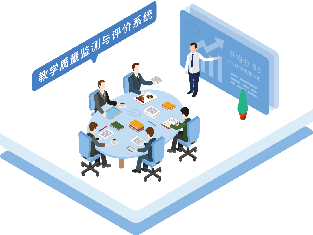 教學質量監測與評價系統是集“教、學、管、測、評、存、用”于一體的中小學智慧教育管理與監控評價系統。系統主要基于網絡閱卷系統、小測評卷管理系統、智慧課堂得出的基礎數據,生成各種統計數據,讓用戶簡單科學地完成考試質量分析、教學質量跟蹤、試題質量分析、教學質量評估、高考分析等,從而解決教育信息隱形化、決策粗放化、資源缺失等難題,提高教學質量與綜合競爭力。