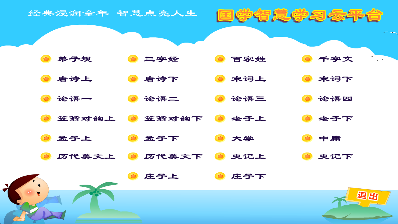 產品詳細介紹本平臺是一個旨在為老師提供備課資源、引導學生自主學習國學經典的資源系統。以國學經典的原文為核心,向外拓展和延伸,建構一個包括文化知識、人物故事、經典誦讀、游戲測評在內的文化系統;在制作上緊密地與現代信息技術、多媒體技術、視頻音畫技術、游戲原理結合起來,同時在內容研發上嚴格遵循學術規范,嚴謹審慎地對待內容的開發, 使之成為信息化與人文性、生動性與科學性完美結合的系統軟件。 1、軟件功能:該軟件為國學多媒體資源,可用于教師備課參考、課堂情境教學和學生自主學習。 2、軟件內容:涵蓋中國文化經典之經、史、子、集、蒙學等15 部經典。 蒙學經典:《弟子規》《三字經》《百家姓》《千字文》《笠翁對韻》; 思想元典:《論語》《孟子》《大學》《中庸》《老子》《莊子》; 文史經典:《史記》《唐詩》《宋詞》《歷代美文》。 3、軟件特點 (1)制作權威:由來自北京大學、清華大學、中國人民大學、北京師范大學的國學大師和兒童心理專家全面解讀,精心打造 。 (2)情景生動:采用快樂學習的設計理念,創設了富有游戲性、趣味性的獨特場景。 (3)互動靈活:設計了童聲跟讀、神奇漢字、互動游戲等多種參與形式,最大限度地激發兒童的學習潛能。 (4)技術領先:充分利用現代計算機多媒體技術,全方位刺激兒童的想象,鮮活靈動地詮釋國學經典。 (5)根據國學經典文本特點和學生學習需求,設計了快樂誦讀、動畫劇場、漢字故事、博聞多識、游戲空間、知識庫等學習功能。 |