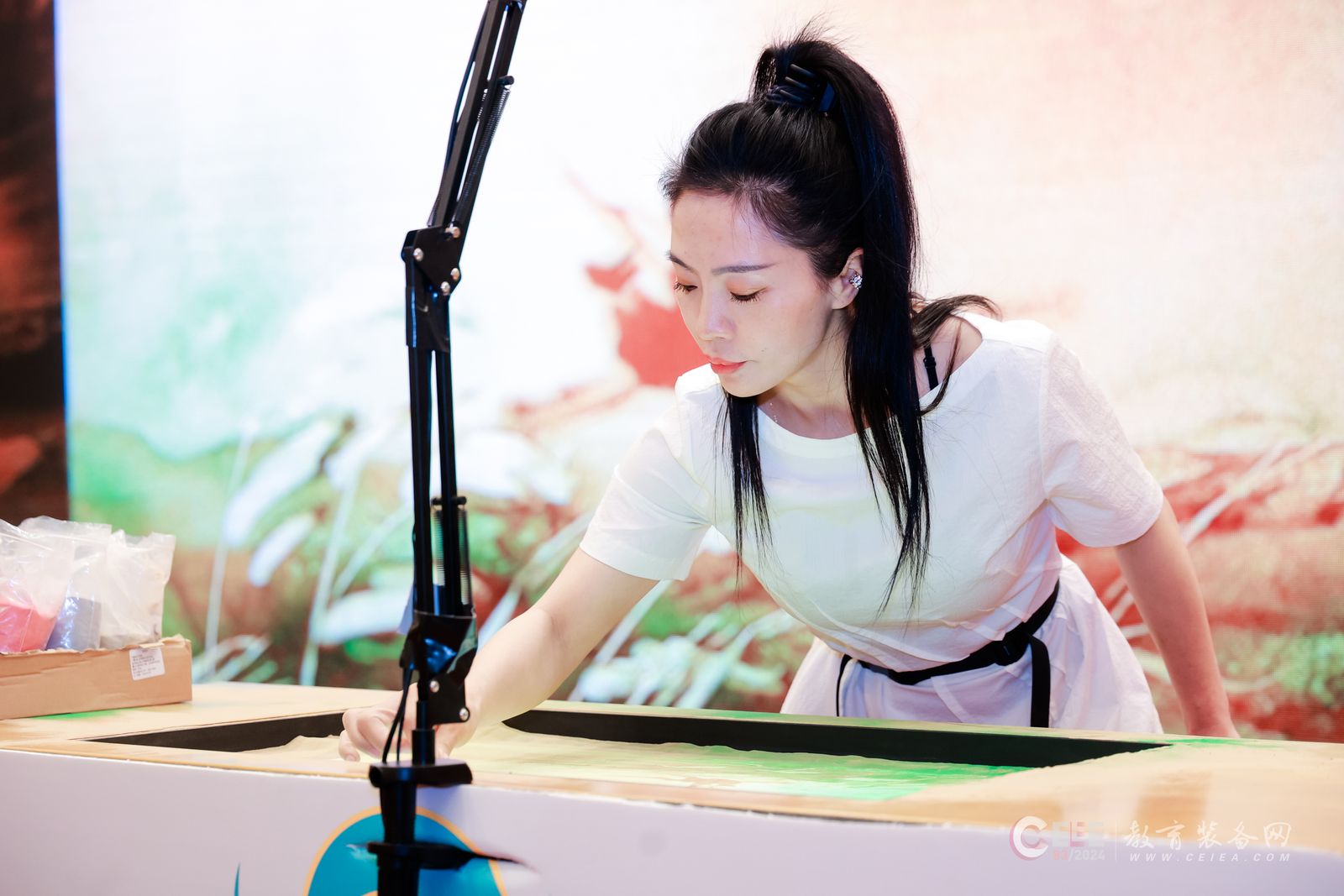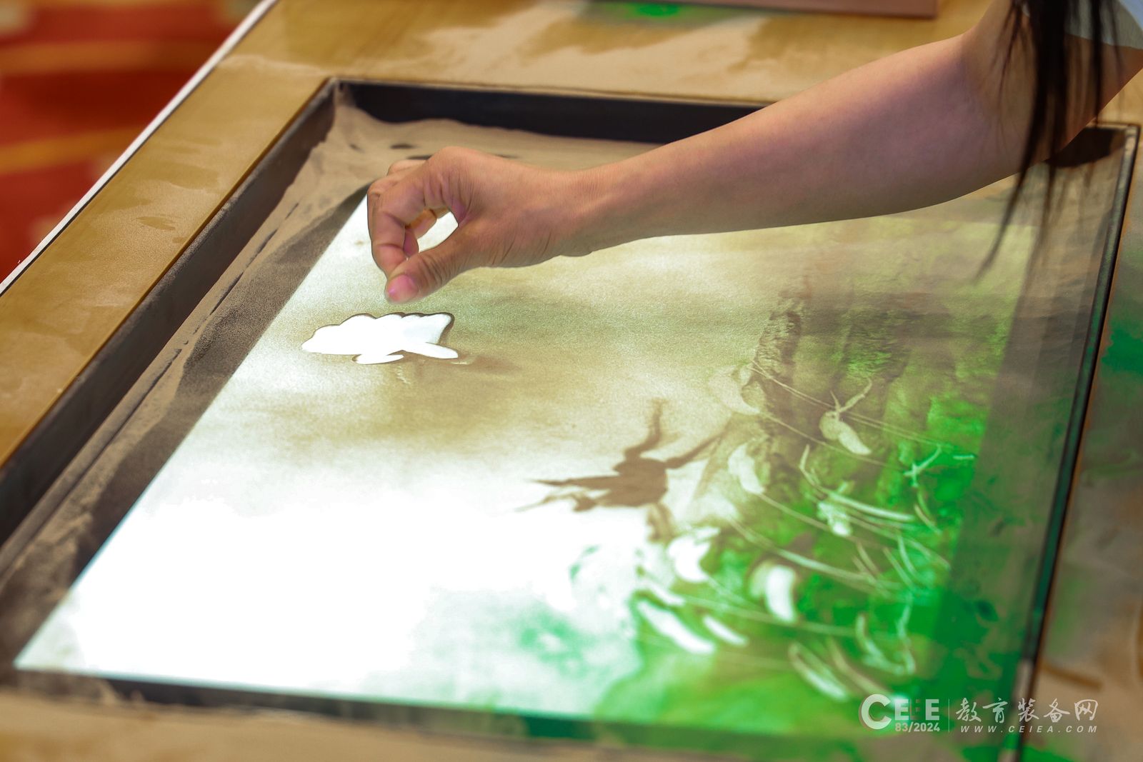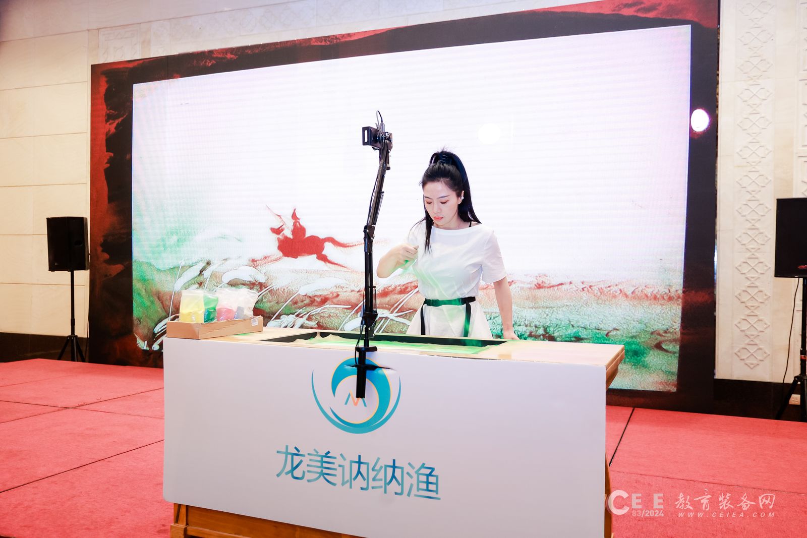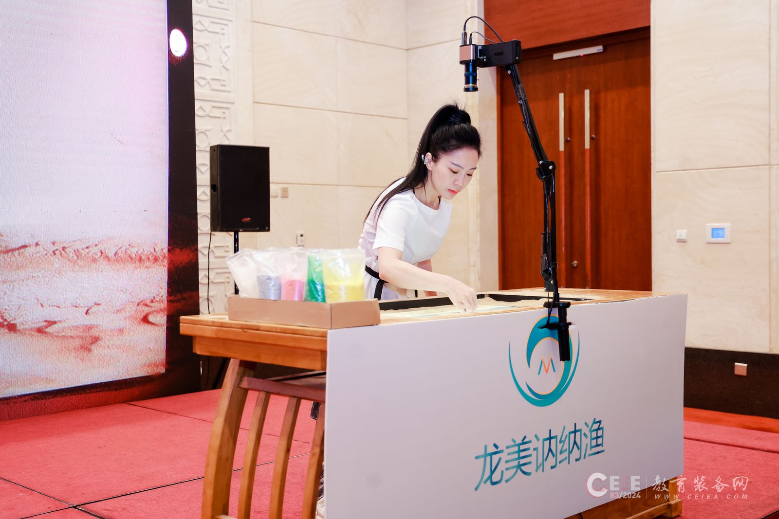會上,北京龍美訥納漁科技有限公司受邀進行了沙畫表演,贏得了現場與會人員的熱烈歡迎與稱贊,智慧沙畫教室是由龍美訥納漁美術自主研發的沙畫表演教育裝備,智慧沙畫教室可為學生們帶來一次前所未有的藝術體驗。不僅配備了先進的技術設備,還融入了多元化的教學方法,使得沙畫教學變得更加生動有趣。