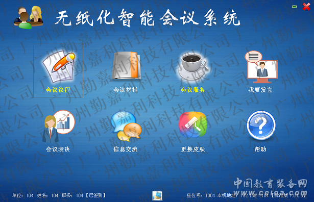 軟件含:服務器軟件、管理端控制軟件、用戶端軟件、大屏投影用戶端軟件,無紙化會議系統(tǒng)軟件功能 1,支持四路外部HDIM信號輸入 在會議使用過程中,需要使用外部筆記本時,在管理端隨時導入筆記本信號,讓與會者與筆記本同步顯示。 2,電腦一鍵開關機 在后臺管理端可控制所有電腦主機一鍵開啟和一鍵關機。開啟后,可對所有電腦終端全部重啟和全部關機,或者可以對會議中不需要使用的部分電腦進行選擇關機,節(jié)省資源。使會議效果最佳。 3,軟件重啟和關閉 在會議使用過程中,可選擇在會議結束后,對軟件進行關閉和重啟管理。 4,座位編排 在管理端座位編排界面,預先設定好每個參會人員的IP地址(最大支持256個IP),進行編號,輸入?yún)藛T名字?娠@示參會人員參會狀態(tài),簽到時間,進行統(tǒng)一管理。 5,參會人員 在管理端參會人員界面,可對即將要進行會議的所有參會人員:姓名,單位,職務等進行填寫。 6,議題管理 可在議題管理界面對即將要進行的會議主題名稱進行設定,logo設置,會議議程,相關會議資料進行選擇并上傳,支持多種格式的文件,可增加、修改、刪除會議議題。 7,會議安排 可在會議管理界面選定事先設置好的會議議題,編輯會議,可根據(jù)需要同時編輯多場會議,可增加、修改、刪除會議,設置會議簽到的時間,進行會議,一個會議內(nèi)可添加多個議題。 8,會議簽到 在會議安排界面,設置好會議開始時間,點擊開始按鈕,每臺終端會出現(xiàn)簽到界面,管理端可編輯簽到界面的背景圖片或顏色、字體格式、字體的大小、字體顏色、簽到按鈕的顏色字體等、簽到界面的布局等,會議端點擊簽到按鈕后,簽到結果會在管理端顯示出來。 9,會議表決 無紙化會議投票表決分為:記名投票和不記名投票。不記名投票會以圖表的方式呈現(xiàn),記名投票會以表格方式記錄,同時可以保持在桌面。 10,信息交流 在客戶端進入信息交流界面,可以與管理端進行文字交流,也可以在公共信息內(nèi)交流,管理端有禁止或允許本會議功能的權限。 11,更換皮膚 在客戶端可以更換皮膚,本軟件有五套備用皮膚。 12,會議幫助 在客戶端及管理端均有會議幫助,在不了解本軟件的情況下,可以進入電子版的WORD文檔進行學習。 13,監(jiān)視器 通過后臺管理端,進入監(jiān)視器界面。對會議所有終端進行實時動態(tài)監(jiān)控管理。每臺客戶端的界面都會顯示在后臺屏幕上。 14,允許發(fā)言 當客戶端有參會人員需要發(fā)言,點擊軟件界面中我要發(fā)言按鈕,管理端會出現(xiàn)提示,經(jīng)管理人員允許后,方可進行發(fā)言,允許發(fā)言后,所有客戶端同步同屏到發(fā)言人的電腦畫面,客戶端可以隨時退出及返回同屏。 15,會議通知 可在會議開始前設定好在參會時需要主要的事項以及相關的重要會議通知等,通知內(nèi)容會以輪回滾動的狀態(tài)顯示在每個會議客戶端上。 16,強制同屏 在所有客戶端中選定一臺,實現(xiàn)其他客戶端的畫面與已選定的客戶端保持一致。可支持文件,視頻等同步播放。 17,會議保密 會議結束后,所有會議資料只要不刪除議題名稱可保存,下次可以繼續(xù)上次開會議程。 18,會議批注 可在會議文件上進行批注、圈劃,批注內(nèi)容可保存。 19,會議服務 參會人員可依據(jù)自己的需要向會議管理人員發(fā)出請求服務,可呼叫:礦泉水、添茶水、筆、紙、計算器等 20,演示模式 當會議比較簡單時,可演示模式,客戶端電腦會自動同屏到管理端(強制同屏,客戶端鍵鼠都不可以用,只能看內(nèi)容)。 21,會議模式 會議模式下有簡易會議、正式簽到會議、正式會議,簡易會議不需要編輯參會人員的姓名,單位,職務,編輯好會議就可直接進入會議;正式簽到會議需要編輯好參會人員的姓名,單位,職務等信息,在編輯會議的界面安排座位,開始會議之后,由客戶端簽到方可進入會議;正式會議同樣需要編輯參會人員的姓名,單位,職務等信息,增加完成后不需要簽到便可進行會議; 22,支持雙屏顯示 支持雙屏顯示,在正屏+背屏的雙屏升降一體機上,除了讓電腦顯示屏的正屏顯示外,背屏可以顯示軟件里直接編制的人員名字等; 23,實現(xiàn)與會者和與會者之間點對點同屏,在會場需要的時候可以通過管理端指定與會者之點對點同屏或參會者與大屏或投影點對點同屏 24,電子白板:支持個人使用與交互使用,支持多人同時共享在同一白板上書畫,支持白板存檔、載入,支持將白板內(nèi)容同步到投影儀或大屏。
