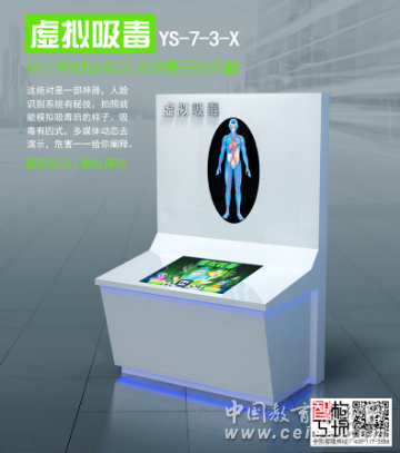 產(chǎn)品詳細(xì)介紹產(chǎn)品說明 該產(chǎn)品包含操作站臺,觸控多媒體系統(tǒng)和互動問答系統(tǒng).通過觸控多媒體系統(tǒng),體驗者不僅能夠了解 靜脈注射,肌肉注射 口服和鼻吸等四種常見的吸毒方式及其危害 還可以在人臉識別系統(tǒng)的幫助下 模擬吸毒后的臉部情形,深刻認(rèn)識毒品危害,以此管示人們遠(yuǎn)離毒品,珍愛健康.,同時,該產(chǎn)品配備 的互動問答系統(tǒng),是利用智能手環(huán),能夠記錄井保存體驗者在本臺機器上的積分和個人信息等數(shù)據(jù). 遠(yuǎn)離毒品 珍愛健康 |