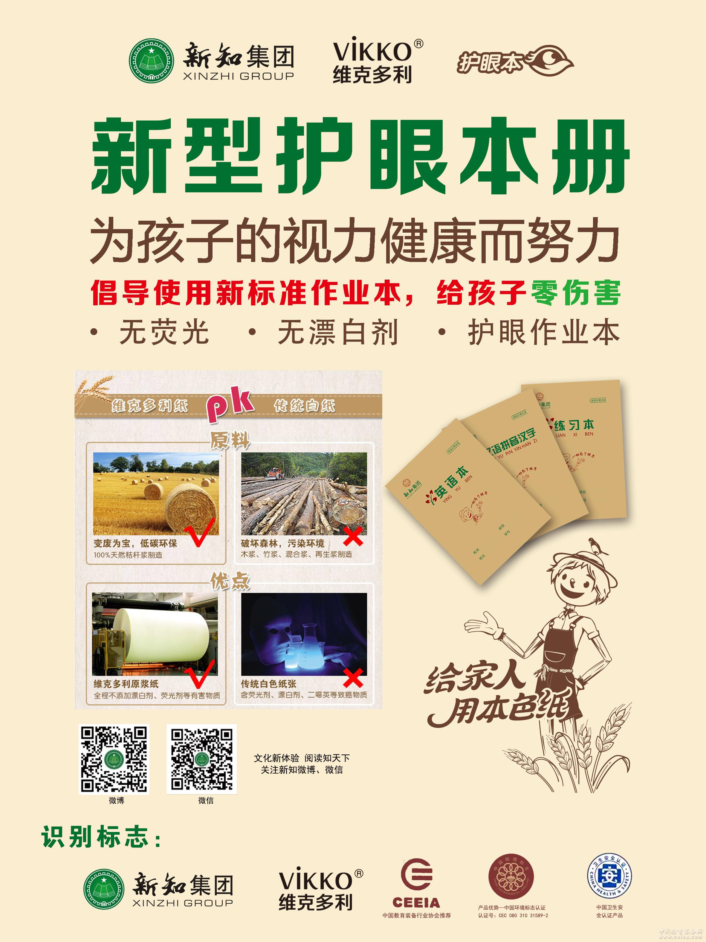 產(chǎn)品詳細(xì)介紹 給老師和家長(zhǎng)的一封信 尊敬的老師和家長(zhǎng)朋友: 您好! 您了解中國(guó)青少年近視率高居全球第一嗎?您知道中國(guó)小學(xué)生視力不良檢出率達(dá)到45.71%,初中生達(dá)74.36%,高中生達(dá)83.28%嗎?您給孩子用的作業(yè)本達(dá)到護(hù)眼標(biāo)準(zhǔn)了嗎?您知道作業(yè)本會(huì)危害到您和孩子的健康嗎? 2014年8月26日,中央電視臺(tái)《焦點(diǎn)訪談》欄目曾專題報(bào)道不環(huán)保的學(xué)習(xí)用品對(duì)學(xué)生視力的危害,觸目驚心的數(shù)據(jù)背后,是超4成家長(zhǎng)不懂得保護(hù)孩子,給兒童使用紙張過(guò)于偏白的作業(yè)本,有些環(huán)保意識(shí)較強(qiáng)的家長(zhǎng)雖然給孩子買了淡黃色的作業(yè)本,卻不知一些看似環(huán)保的作業(yè)本仍然會(huì)含有大量的熒光劑、二噁英等有害物質(zhì),且重金屬超標(biāo),會(huì)對(duì)做作業(yè)的孩子和批閱作業(yè)的老師健康造成嚴(yán)重影響。 為使孩子和老師遠(yuǎn)離熒光劑等有害物質(zhì)的毒害,國(guó)家文化出口重點(diǎn)企業(yè)——新知集團(tuán)攜手泉林集團(tuán)和維克多利集團(tuán)等中國(guó)一流紙業(yè)名企,共同研發(fā)出本色環(huán)保護(hù)眼健康的作業(yè)本。采用“本色”原漿技術(shù)提取天然植物纖維,全程不使用漂白劑等有害制劑,是新一代對(duì)環(huán)境無(wú)污染,對(duì)人體無(wú)危害,原漿、原色的健康環(huán)保型造紙制漿技術(shù)。獲得國(guó)家秸稈原漿本色專利,并通過(guò)中國(guó),美國(guó)FDA和歐盟AP三大食品級(jí)檢測(cè),2018年入選CCTV《匠心》欄目,榮獲72屆中國(guó)教育裝備展金獎(jiǎng),成為中國(guó)教育裝備協(xié)會(huì)推薦產(chǎn)品。 為保護(hù)中國(guó)青少年視力,2018年3月26日,中國(guó)教育裝備行業(yè)協(xié)會(huì)出臺(tái)了《中小學(xué)作業(yè)本標(biāo)準(zhǔn)》,古有“孟母三遷”,讓我們從現(xiàn)在開(kāi)始,共同學(xué)會(huì)辨識(shí)作業(yè)本的優(yōu)劣,認(rèn)識(shí)環(huán)保護(hù)眼作業(yè)本的相關(guān)標(biāo)志,使用環(huán)保護(hù)眼作業(yè)本,讓孩子遠(yuǎn)離危害,為老師和孩子創(chuàng)造一個(gè)健康學(xué)習(xí)的空間。 新知集團(tuán)愿與更多人攜手為孩子和老師的視力健康而努力! |