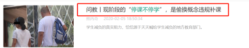 作為家長,我們最關(guān)注的還是孩子的學(xué)習(xí)狀態(tài)和成績。在疫情剛爆發(fā)那段時(shí)間,我關(guān)注到一些學(xué)校組織老師錄課,讓學(xué)生在家里看教學(xué)視頻或者直播,網(wǎng)上對(duì)此的負(fù)面評(píng)價(jià)頗多。而且我身邊也有一些同事、朋友也跟我吐槽:‘在家一邊辦公,一邊看孩子有沒有認(rèn)真上課,還要給孩子拍照打卡,不然就要在家長群里被@,真是太難了。’