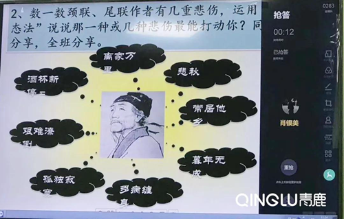 領導致辭結束后,江陽職高的宋老師與兩校的同學們應用青鹿多點互動智慧教室,上了新學期第一節異地同步語文課。與傳統的遠程直播課不同,這節遠程語文課能讓遠在700公里之外的鹽源職中的同學們充分參與到課堂的互動當中。