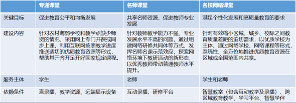 名校網(wǎng)絡(luò)課堂 :強(qiáng)調(diào)開放性,主要針對(duì)有效縮小區(qū)域、城鄉(xiāng)、校際之間教育質(zhì)量差距的迫切需求。