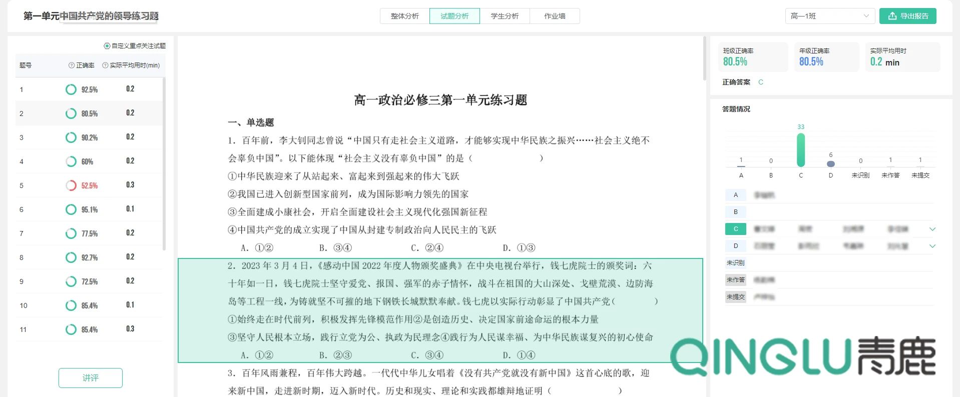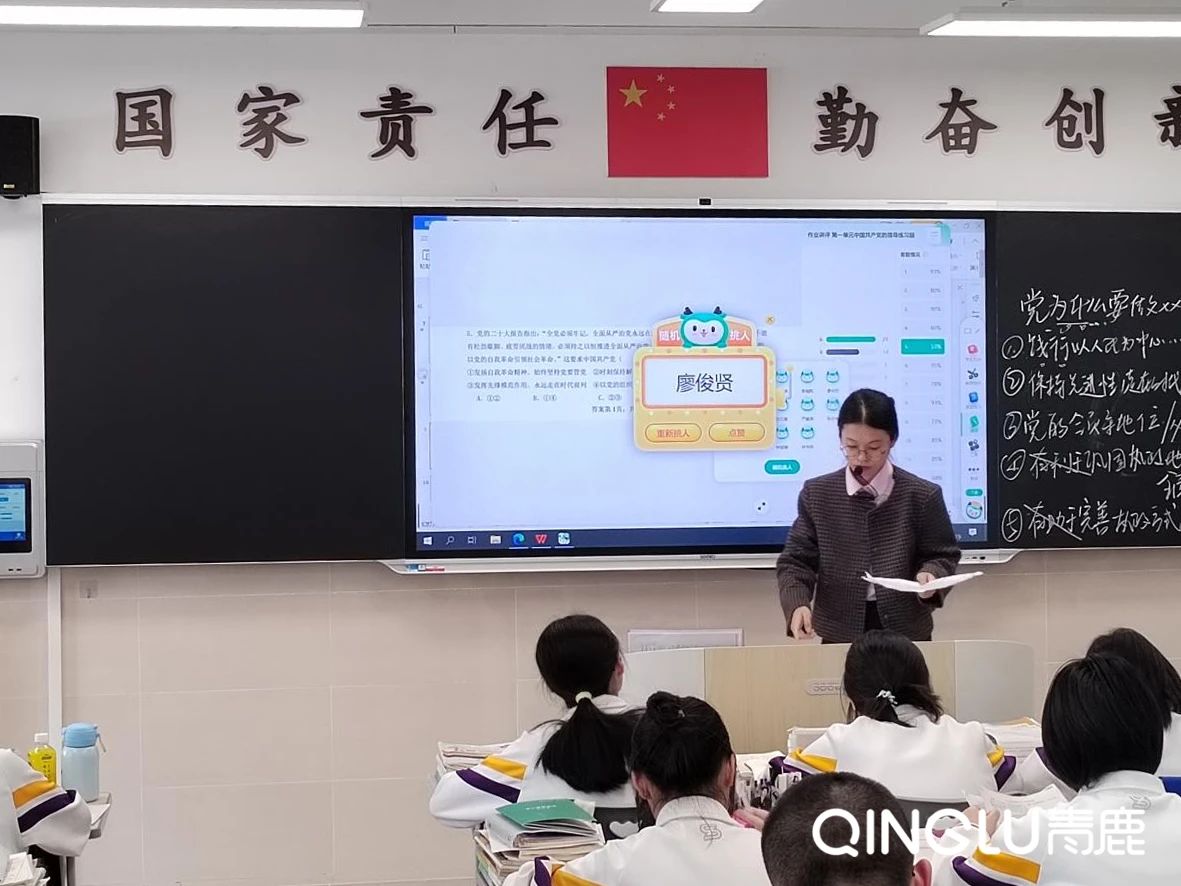 在黃晶穎老師帶來的道德與法治課《人教版必修3第一單元復習課》上,黃老師提前一天下發課外練習作業的形式,讓同學們進行單元小測,老師通過單元小測的測試結果進行針對性備課,讓課堂教學更精準。