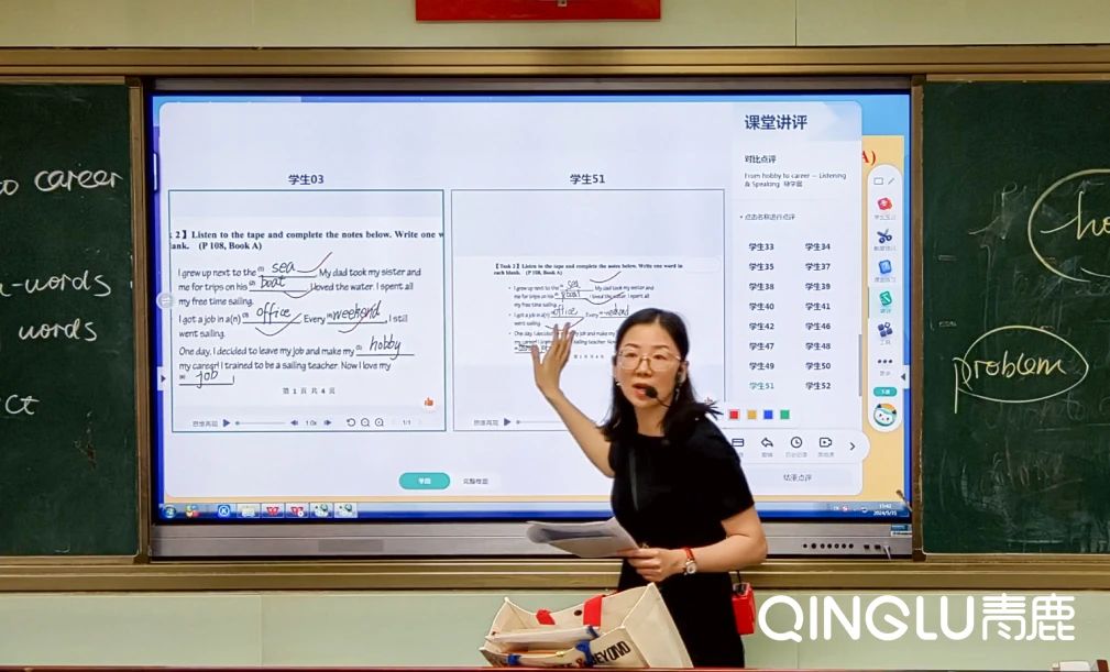 課中,老師在完成課程知識講授后,通過青鹿智慧紙筆系統,布置選擇題聽力任務等練習,及時了解學生掌握情況的效果,鞏固學生對所學知識的理解。