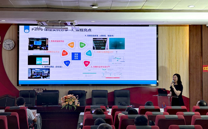 番禺區(qū)市橋橋城中學(xué)歐陽玉香老師以《智慧紙筆系統(tǒng)精準(zhǔn)賦能課堂》為題進(jìn)行分享。歐陽老師將智慧紙筆技術(shù)與典型教學(xué)環(huán)節(jié)緊密結(jié)合,技術(shù)應(yīng)用貫穿“前測/預(yù)習(xí)檢測”“合作學(xué)習(xí)/實驗探究”“針對性檢測”“練習(xí)鞏固”“課后回顧”全過程,通過精準(zhǔn)數(shù)據(jù)反饋、以評促教的教學(xué)策略,更好地實現(xiàn)了因材施教、以生為本的教育效果。