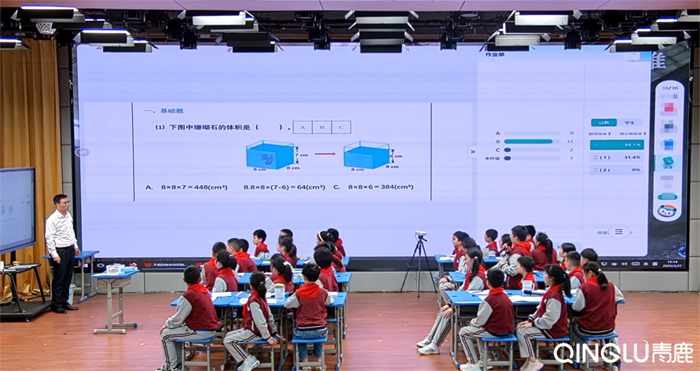 活動上,嘉魚縣實驗小學的梁富升老師帶來了一節探究實驗型數學課《不規則物體的體積》。本堂課示范了如何借助青鹿智慧紙筆技術實現了“做數學”的過程數字化、思維可視化、指導精準化,為探究性學習提供了完整的技術增強范式。