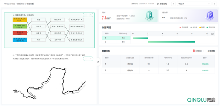 課堂上,伍老師依托青鹿智慧紙筆系統(tǒng),檢測(cè)學(xué)生們對(duì)不同音樂(lè)主題的(樂(lè)器音色、音樂(lè)形象)歸納及對(duì)不同樂(lè)器音色的聽辨。學(xué)生在印有點(diǎn)陣碼的學(xué)習(xí)單上書寫,筆跡通過(guò)智能筆實(shí)時(shí)傳輸至課堂大屏。教師全程動(dòng)態(tài)監(jiān)測(cè)學(xué)生作答過(guò)程,精準(zhǔn)捕捉個(gè)體差異。