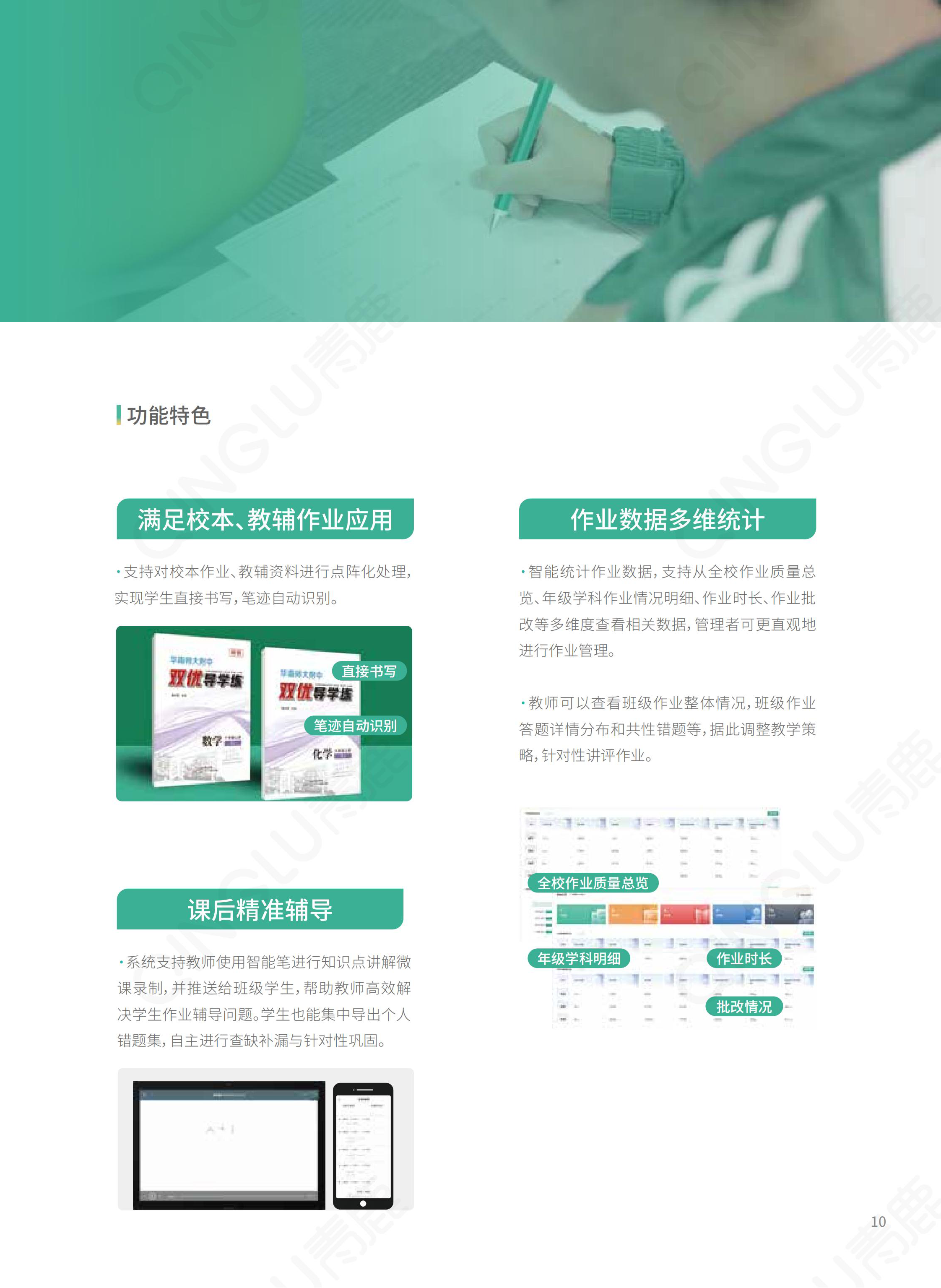 | 智慧教育信息化整體解決方案提供商,我們提供集智慧紙筆課堂、智慧錄播為一體的智慧教學環境,提供一套可廣泛應用于K12學校信息化整體建設的開放式底層平臺,為學校的教學和管理質量提升提供支撐,賦能教育的數字化轉型。 |
