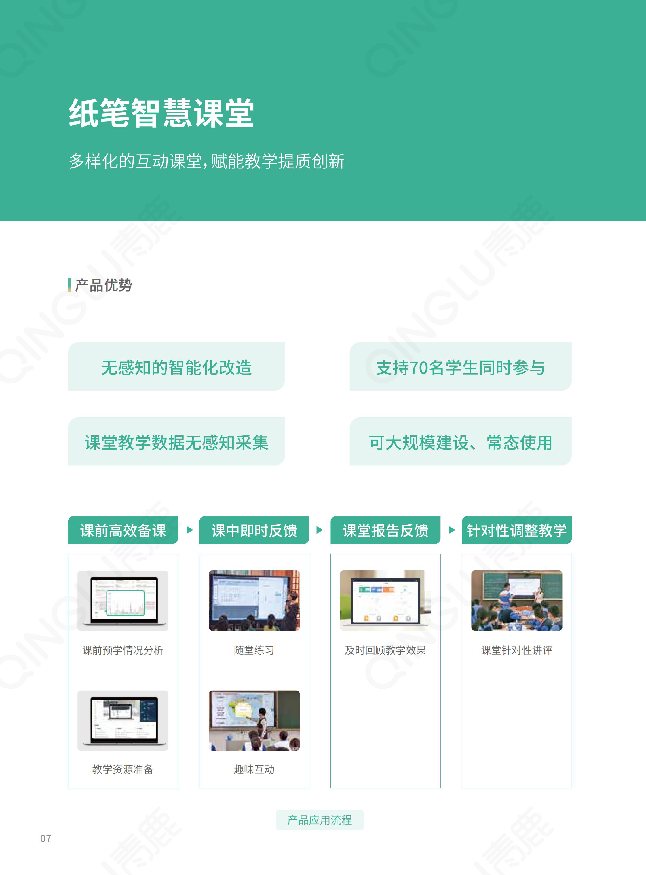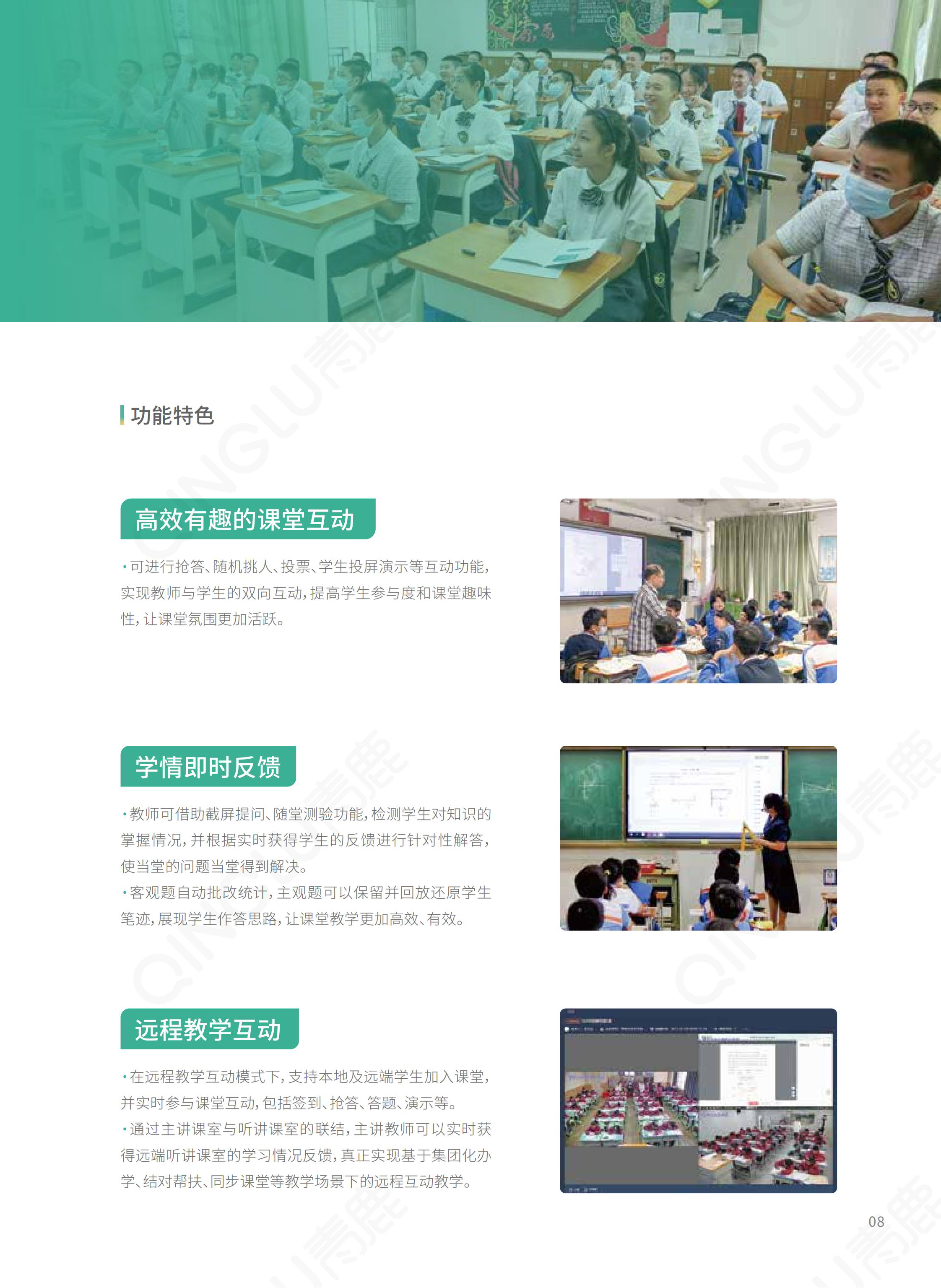 | 智慧教育信息化整體解決方案提供商,我們提供集智慧紙筆課堂、智慧錄播為一體的智慧教學環境,提供一套可廣泛應用于K12學校信息化整體建設的開放式底層平臺,為學校的教學和管理質量提升提供支撐,賦能教育的數字化轉型。 |