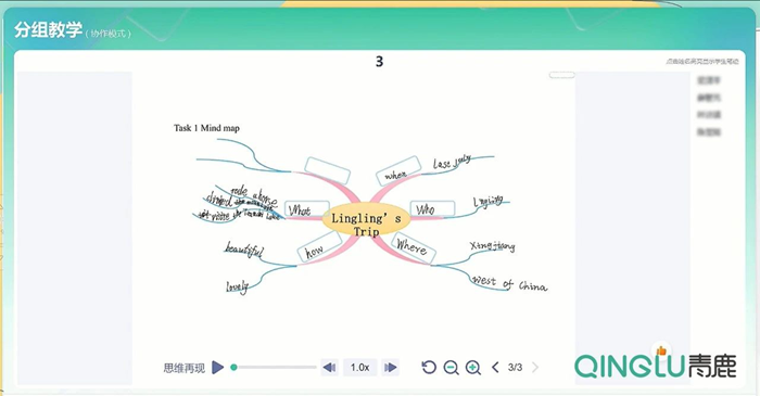學生小組通過使用青鹿智能筆書寫探究成果,繪制的思維導圖實時展示至一體機大屏。教師可以即時查看學生完成的情況,并快速、精準地對作答情況進行講解分析。