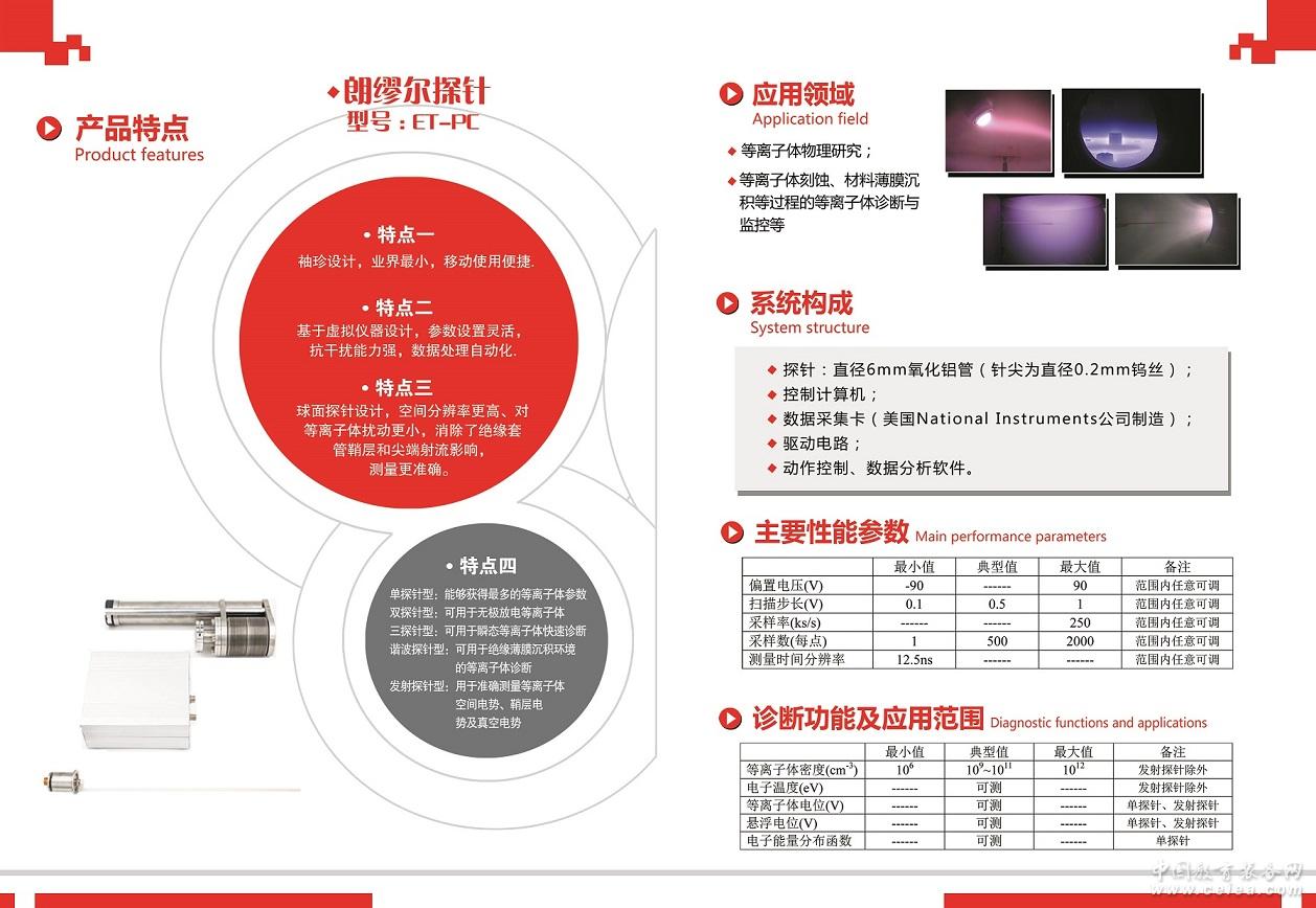 產品詳細介紹1.系統介紹 MMLAB-prob-1型探針系統是MMLAB-prob系列朗繆爾探針系統的單探針型號。MMLAB-prob系列朗繆爾探針系統基于虛擬儀器原理設計,具有硬件結構簡單、可靠性強、抗擾動能力強等優點。MMLAB-prob系列朗繆爾探針系統的軟件界面友好,操作簡便,實現診斷與數據處理全過程自動化。。