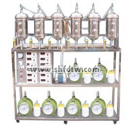 并聯(lián)不銹鋼反應(yīng)器主體、風(fēng)機、氣體流量計、濕式氣體流量計、塑料瓶吸收裝置、球閥、溫度顯示表、儀表控制箱、漏電保護(hù)開關(guān)、不銹鋼臺架等組成。