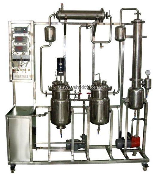 本裝置由提取罐、蒸發器、攪拌電機、列管式加熱器、冷凝器、油分器、收油器、藥液泵、貯液罐、過濾器、真空泵、調速器、數顯溫度儀、不銹鋼框架、控制屏等組成。提取罐、蒸發器配導熱油加熱系統,提取罐、蒸發器頂部蒸汽出口均設置了除沫器。 |