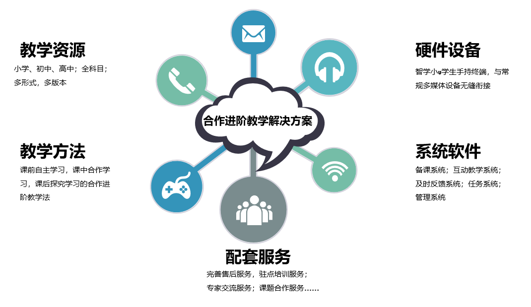 中小學合作進階教學解決方案,是聚焦課堂教學,通過U伴慧學智能教學平臺貫穿課前-課中-課后教學全流程,以培養高階思維能力和合作精神為目標的中小學課堂解決方案。U伴慧學智能教學平臺是在北京師范大學張萍教授的指導下,依據合作進階教學法,運用先進的云計算、大數據和人工智能技術,將教學理念、教學方法、教學資源、教學過程與信息技術進行深度融合,自主研發的集硬件終端、軟件應用、云端數據和教學資源于一體的智能教學平臺。希望通過U伴慧學互動高階課堂解決方案的綜合運用,能重構課堂教學環境,促進教學內容、課堂組織方式、能力培養重點等的課堂轉變。