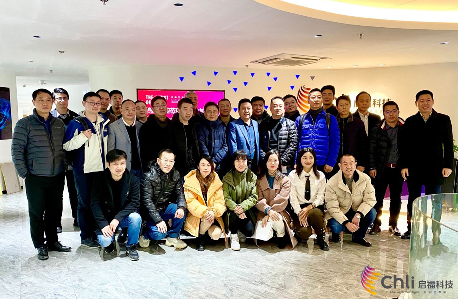 陳總帶領參會人員參觀了公司3D Mapping展廳、生產環境、檢測中心、全光譜LED照明教室等區域,了解公司的產品和企業文化