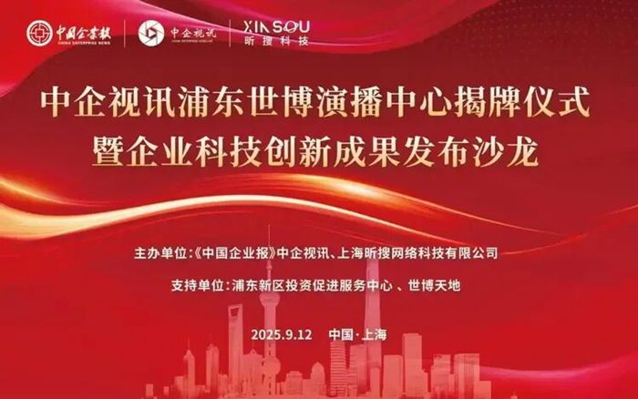 2025年9月12日下午,“智匯浦東·視創未來——中企視訊浦東世博演播中心揭牌儀式暨企業科技創新成果發布沙龍”在浦東世博天地隆重舉行。本次活動由《中國企業報》中企視訊與上海昕搜網絡科技有限公司聯合主辦,浦東新區投資促進服務中心和世博天地支持,匯聚了政府代表、企業領袖、專家學者等百余名嘉賓,共同見證這一產業經濟生態型全媒體智庫平臺的啟航。