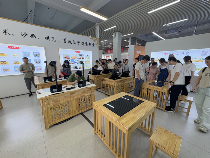 2025年7月14日,浙江省臺州市三門技師學院教師代表團蒞臨文興小書家參觀交流,實地考察智慧書法、美術、棋藝及沙畫教室等創新教育產品。雙方就數字化美育解決方案的應用前景展開深度探討,共同探索“科技+藝術”融合育人的新模式。