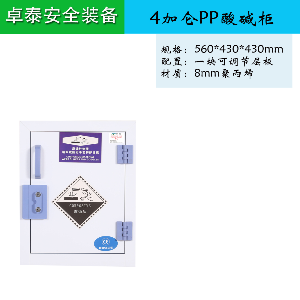 產品詳細介紹宿遷卓泰安全裝備銷售熱線: 銷售部:陳先生13851372037 業務部郵箱:choitay@163.com 官方網站:www.choitay.com PP酸堿柜具有耐強酸、強堿與抗腐蝕的特性。適用于實驗室各類工具的洗滌對帶有化學特性的試劑瓶或其他物品進行清洗。 產品特色: 1.具有耐強酸、強堿與抗腐蝕的特性。 2.降低環境污染,維護使用者的健康。 制作工藝: 1,柜體采用一體成型、無縫焊技術,極大的加強了柜體的結構性,有效的降低了柜體因熱脹冷縮而引起的變形。 2,層板:采用8mm厚瓷白色優質原料PP板制作,四邊做突起設計 防止濺漏;底部用立式加固條整體焊成型,保證其受重不會變形。 層板為活動式,可隨意抽取 。 3,頂部預留90或者110mm排風口(可選) 4,警示標簽:柜門開口貼有警示標簽,提醒周圍人群注意安全, 材質規格: 1.本體:采用抗強酸堿耐化學藥品,耐沖擊磁白色PP板承制,具有永久性,厚度8mm,抗強酸、化學藥品,耐沖擊,不腐蝕,不生銹。 2.鉸鏈/把手:采用耐強酸、強堿材質,拉門采用同質PP聚丙稀材料制作。 非標規格,可依照客戶需求定制。 型號 外形尺寸(cm) 附 注 選配 高×寬×深 ZT4P 56×43×43 PP8mm板材、單門、一塊隔板、PP雙鎖扣 PP雙暗鎖 ZT12P 89×59×46 PP8mm板材、單門、一塊隔板、PP雙鎖扣 ZT22P 165x60x46 PP8mm板材、單門、兩塊隔板、PP雙鎖扣 ZT30P 112×109×46 PP8mm板材、雙門、一塊隔板、PP雙鎖扣 ZT45P 165×109×46 PP8mm板材、雙門、兩塊隔板、PP雙鎖扣 ZT60P 165*86*86 PP8mm板材、雙門、兩塊隔板、PP雙鎖扣 ZT90P 165*109*86 PP8mm板材、雙門、兩塊隔板、PP雙鎖扣