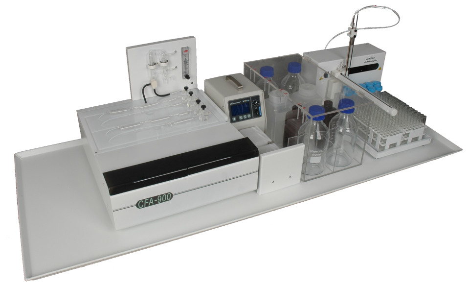 產品詳細介紹工作原理: 1)*儀器采用SFA(氣泡間隔流動)技術原理; 2)*無需六通閥定時進樣; 3)*無需樣品與反應試劑過濾脫氣等前處理工作; 4)待檢樣品與反應試劑在蠕動泵的推動下進入化學反應模塊,在密閉的管 路中連續流動,被氣泡按一定的間隔規律地隔開,并按特定的順序和比例 混合、反應,待顯色完全后進入流動檢測池進行光度檢測。 自動進樣器(1套) 化學反應模塊(4套) 蠕動泵(1套) 檢測器(4套) 數據處理工作站(含計算機及打印機) 檢測項目: 分析方法: 所有項目均采用國標方法。 總氰化物: 在線蒸餾-紫外線消化 異煙酸-巴比妥酸分光光度法 揮 發 酚: 在線蒸餾 4-氨基安替比林分光光度法 硫 化 物: 在線蒸餾 亞甲藍光度法 陰離子洗滌劑: 亞甲藍分光光度法 |