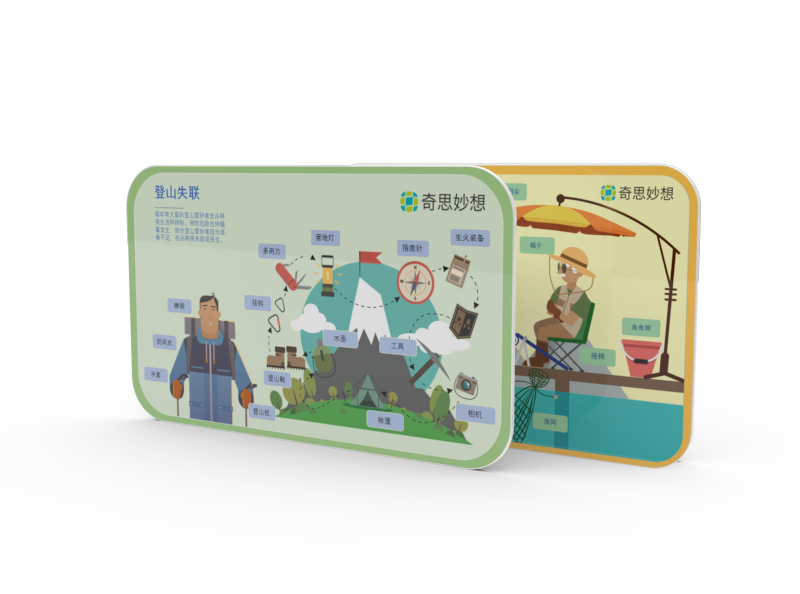 簡介:靈感啟發卡包含生活場景、職業場景和活動場景三大類別。向學習者展示豐富的生活空間、職業角色特點和各式各樣的人類活動,為學習者進行創意提供大量可視化素材,有效拓寬
