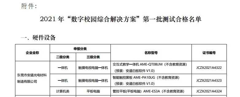 在眾多數(shù)字校園綜合解決方案中,安道教育憑借“智能交互教學(xué)平板”(原安道一體機(jī))、“納米智慧大屏黑板”(原安道智能黑版)與“管板平板”三款明星產(chǎn)品,脫穎而出,成功入選。