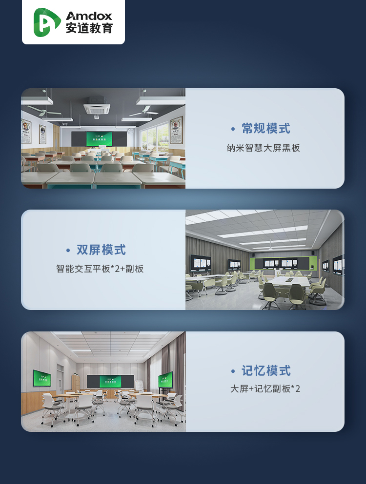 常規(guī)的智慧黑板模式、雙屏顯示模式、記憶黑板模式......納米智慧大屏黑板H系列以安裝便捷、靈活多變的產(chǎn)品組合形態(tài)等優(yōu)勢(shì),兼容多種教學(xué)場(chǎng)景,為學(xué)校提供多種選擇,滿足不同學(xué)校的多元化需求。