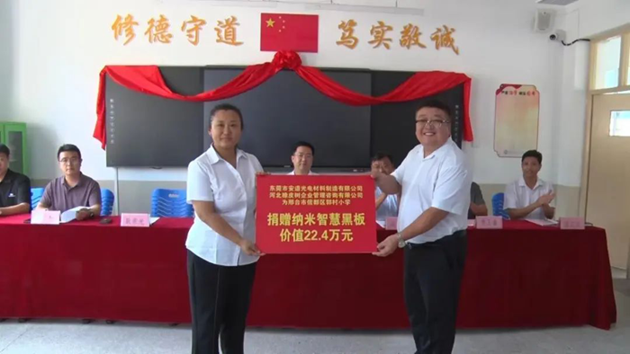 耿東光表示,安道教育此次向信都區郭村小學捐贈智慧黑板不僅是幫助‘郭守敬故里’郭村小學改造提升,更是安道教育回饋社會的具體表現。安道教育自成立以來,始終致力于為教育行業提供高品質、創新性的教育裝備產品和服務,能有今日之成就,離不開社會各界的大力支持。希望通過這個捐贈活動,來表達安道教育回饋社會的愛心,帶動更多有社會責任的企業和愛心人士加入到回饋社會活動中來。