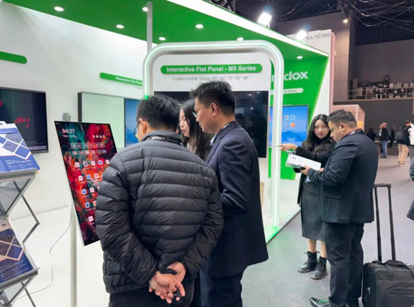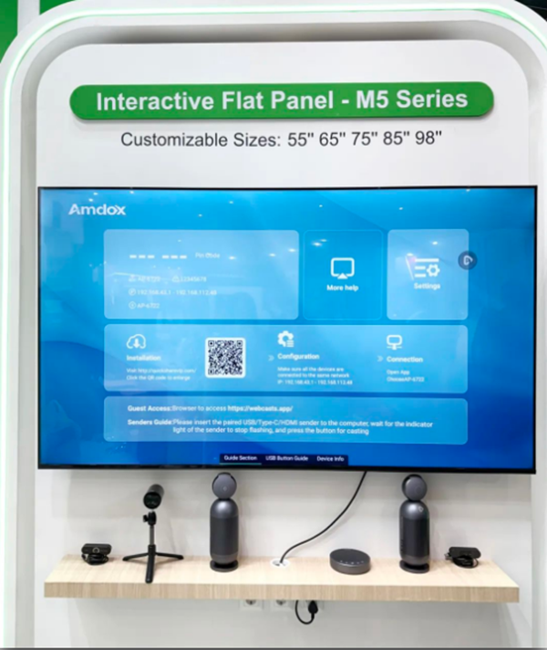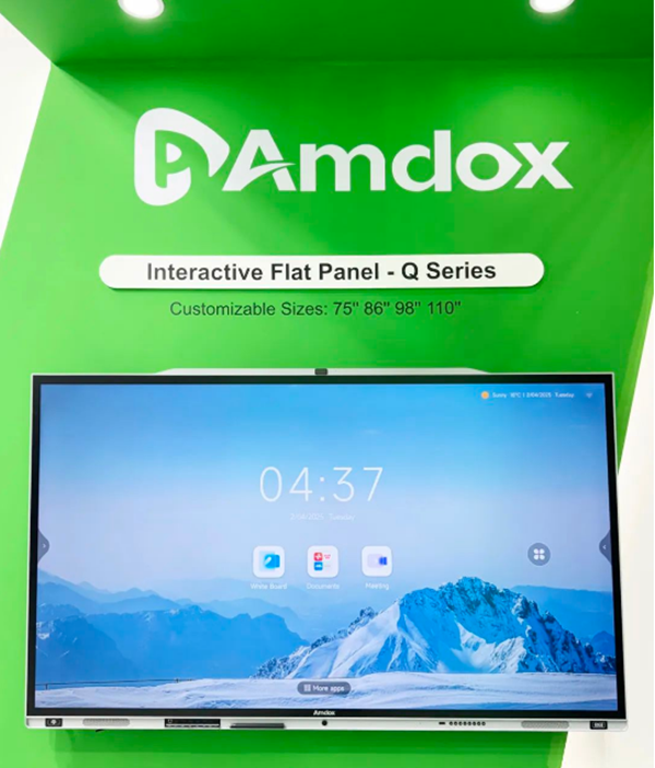 作為2025年第二場海外展會,安道教育(Amdox)重點展出了榮獲2023年中國電子視像行業協會“科技創新獎”的智能交互平板Q系列、榮獲“2024年信創適配性創新技術獎”的智能交互平板S4系列,以及會議頭戴式耳機、360°智能會議一體機套件等一系列完善的視聽生態配件。