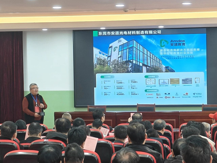 在展會(huì)期間還同期舉辦了新產(chǎn)品、新技術(shù)研討會(huì)。安道教育北方大區(qū)銷(xiāo)售總監(jiān)耿東光受邀出席并發(fā)表主題為「安道教育全場(chǎng)景智慧教育解決方案」演講。在演講中,耿東光介紹了安道教育最新的公司發(fā)展情況,并結(jié)合當(dāng)前邢臺(tái)教育行業(yè)發(fā)展的一些痛點(diǎn)和現(xiàn)狀提出了安道新解決方案。