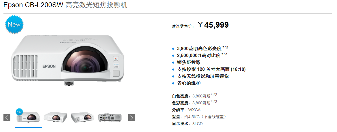 愛普生CB-L200SW 高亮激光短焦投影機(jī)