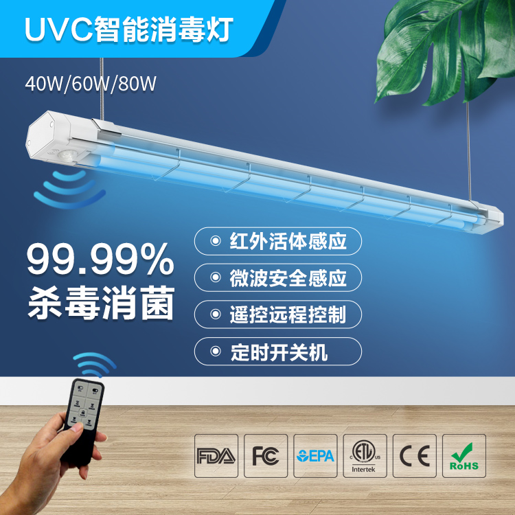 產(chǎn)品詳細(xì)介紹應(yīng)用范圍: 醫(yī)院/學(xué)校/商場(chǎng)/公共場(chǎng)所 功率:2x40W 輸入電壓:220-240V 燈管類型:UVC 波長(zhǎng):254nm 安裝方式: 吸頂裝 吊裝 壁掛 控制器:無(wú)線控制 時(shí)間:30/60/90/120 分鐘 傳感器:微波+ 紅外 尺寸: L1313 x W67 x D54mm 認(rèn)證: ETL FCC FDA CE |